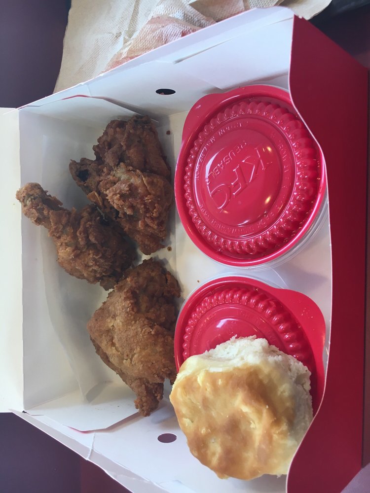 Includes 3 pieces of KFC's world famous fried chicken with Mike's Hot Honey sauce, choice of side, medium drink & biscuit. (1100-2180 cal.)